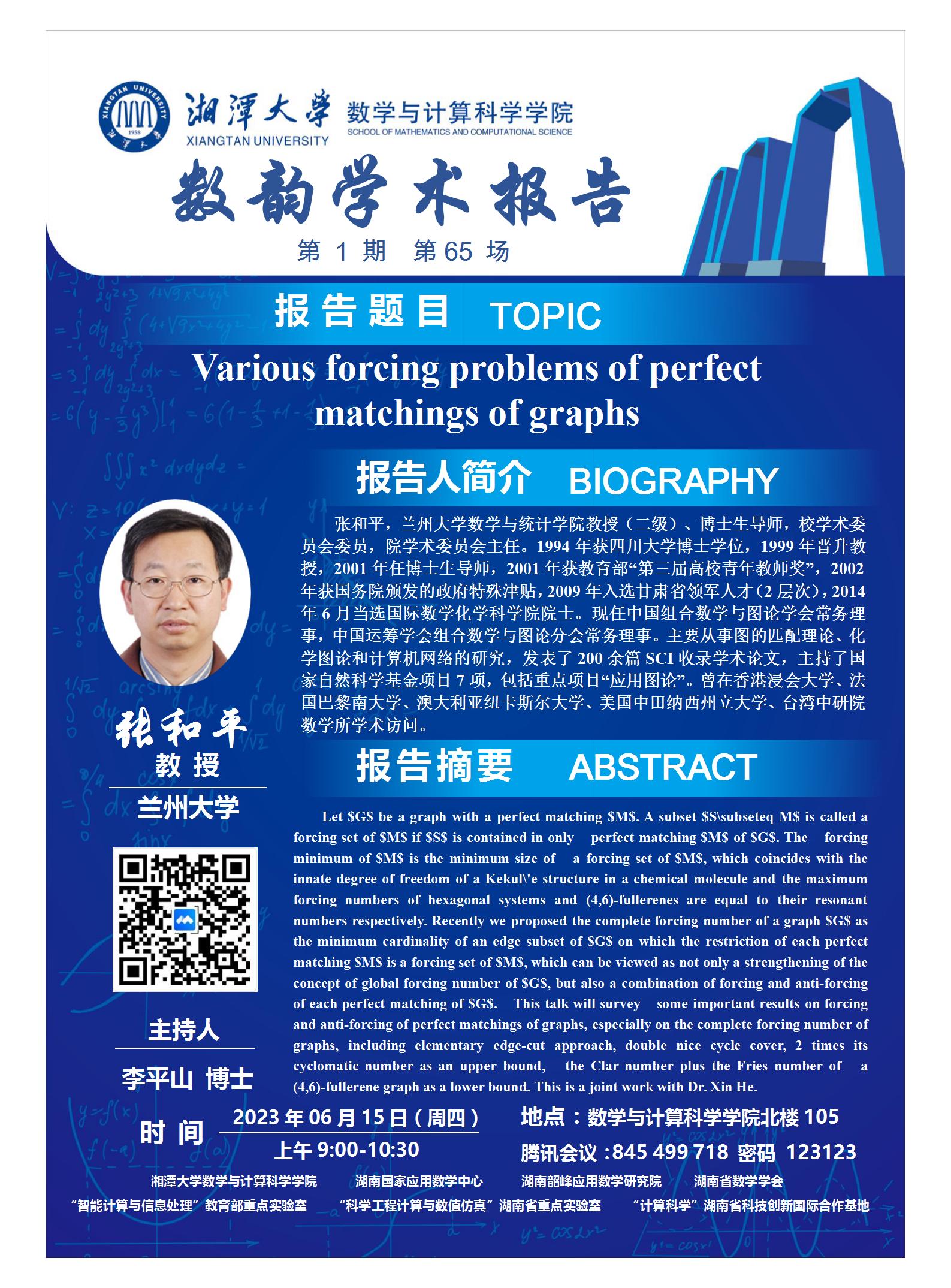 数韵学术报告-Various forcing problems of perfect matchings of graphs